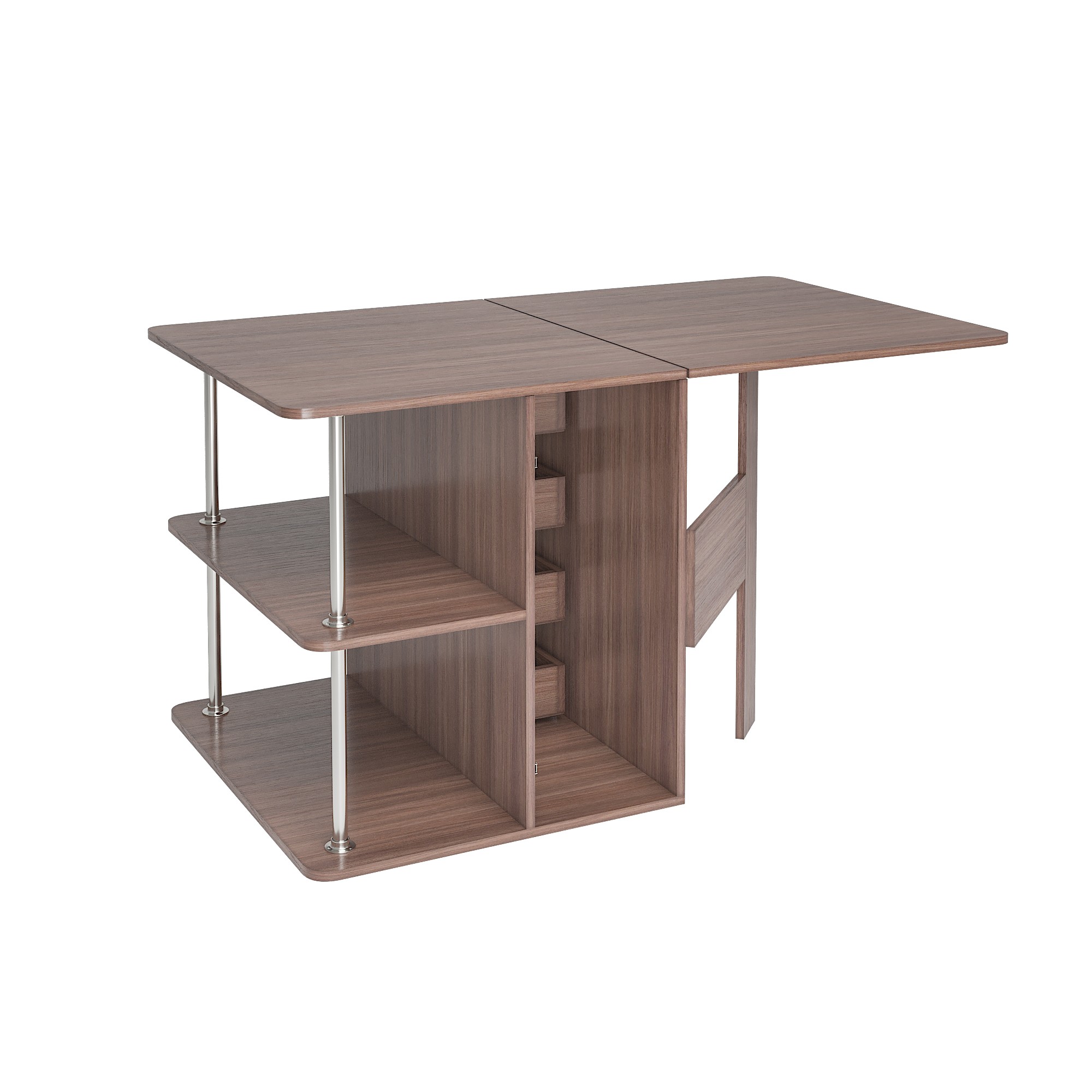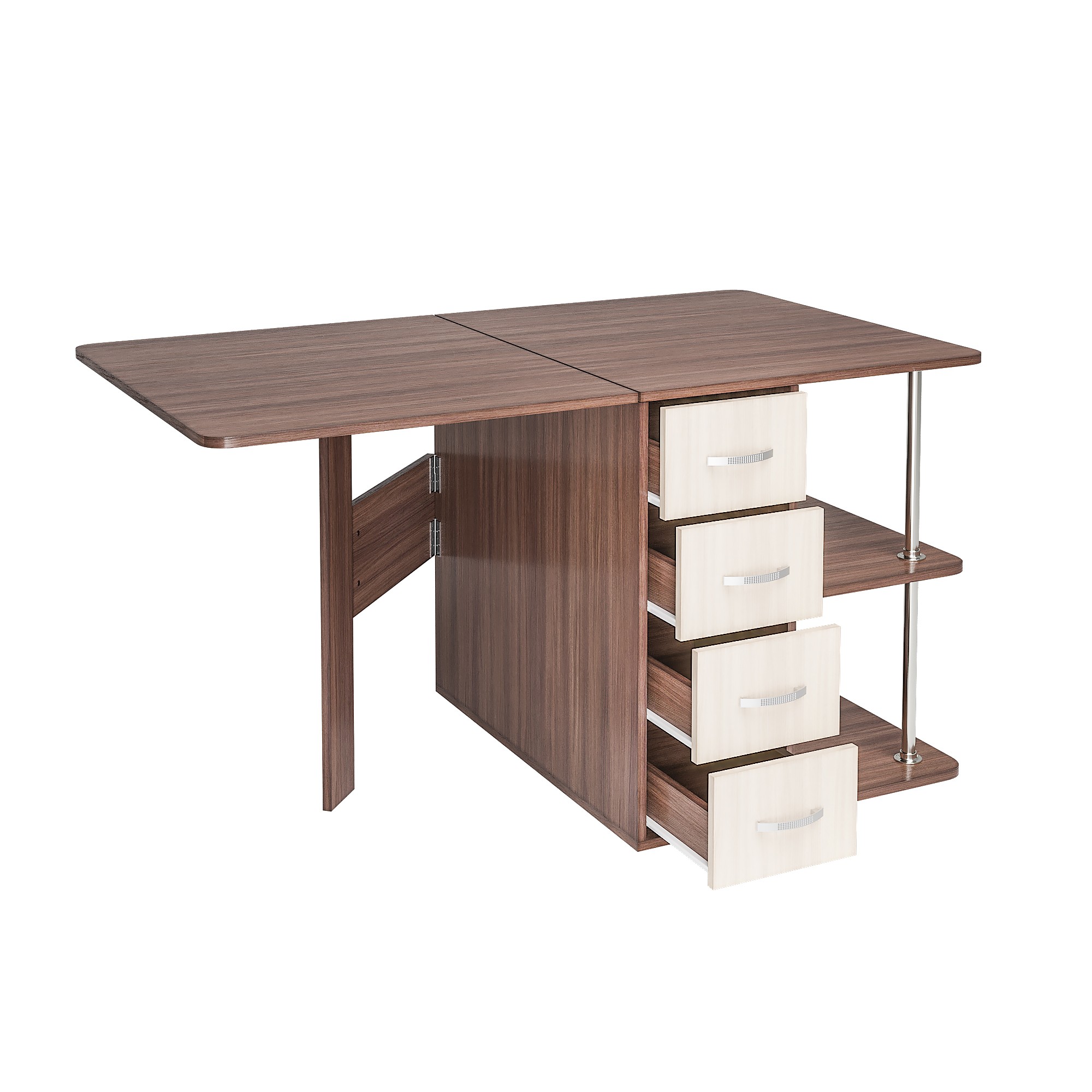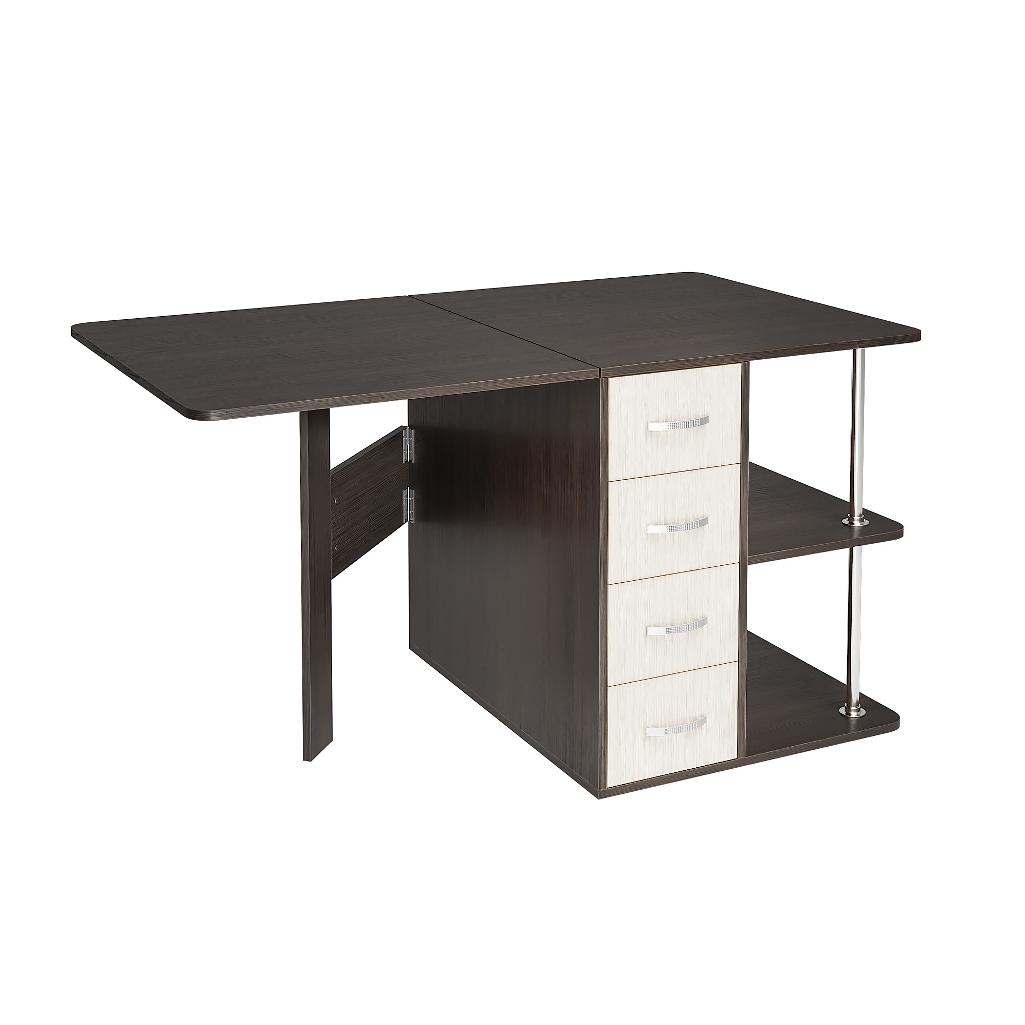 • С одной стороны стола находятся ящики для хранения, с другой – распашная створка, которую фиксирует "толкатель" (открывается при нажатии)